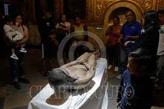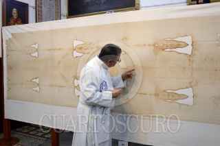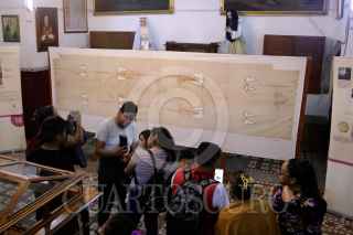 PUEBLA, PUEBLA, 24FEBRERO2025.- La exposición ¿Quién es el hombre de la Sábana? presenta en el templo de Nuestra Señora de la Soledad una réplica certificada de la Sábana Santa por la Arquidiócesis de Turín, Italia, junto con información histórica y una imagen en 3D de la figura impresa en el manto sagrado. Estará disponible hasta el 3 de marzo. FOTO: MIREYA NOVO/ CUARTOSCURO.COM