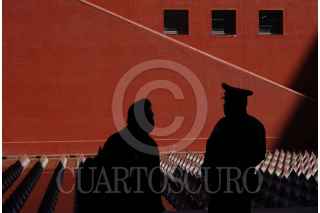CIUDAD DE MÉXICO, 25FEBRERO2025.- Siluetas ante la fuente "País de Volcanes" del artista plástico Vicente Rojo en la explanada de la Secretaría de Relaciones Exteriores. FOTO: GRACIELA LÓPEZ/CUARTOSCURO.COM