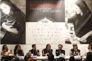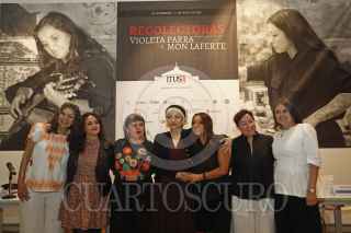 GUADALAJARA, JALISCO. 25FEBRERO2025.- La cantante Javiera Parra, nieta de Violeta Parra, la cantante y artista multidisciplinaria Mon Laferte encabezaron una conferencia de prensa en el Museo de las Artes (MUSA) de la Universidad de Guadalajara, para presentar la obra “Recolectoras” Violeta Parra y Mon Laferte. FOTO: FERNANDO CARRANZA GARCIA / CUARTOSCURO.COM