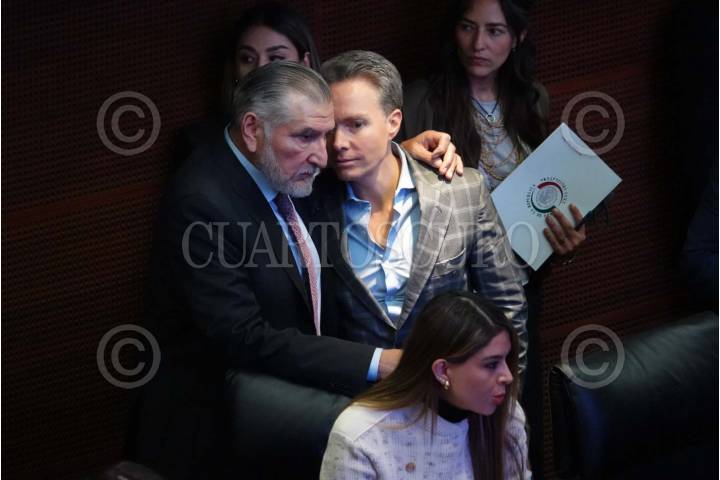 CIUDAD DE MÉXICO, 25FEBRERO2025.- Los senadores Adán Augusto y Manuel Velasco conversaron mientras la senadora Ruth González Silva participaba durante la Sesión Ordinaria en el Senado de la República. FOTO: GRACIELA LÓPEZ/CUARTOSCURO.COM