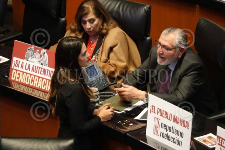 CIUDAD DE MÉXICO, 25FEBRERO2025.- Los senadores Andrea Chávez y Adán Augusto conversaron durante la Sesión Ordinaria en el Senado de la República. FOTO: GRACIELA LÓPEZ/CUARTOSCURO.COM