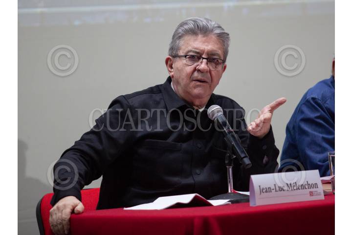 CIUDAD DE MÉXICO, 25FEBRERO2025.- El escritor Jean-Luc Mélenchon acompañado de Paco Ignacio Taibo II presentó su libro ¡Ahora el Pueblo! Hacia la revolución Ciudadana en el Fondo de Cultura Rosario Castellanos. FOTO: ANDREA MURCIA /CUARTOSCURO.COM