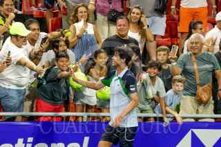 ACAPULCO, GUERRERO, 25FEBRERO2025.- El joven tenista mexicano Rodrigo Pacheco, hace historia al vencer al australiano Aleksandar Vukic, en el Abierto Mexicano de Tenis 2025, en lo que fue su primer victoria en in partido de ATP. FOTO: CARLOS ALBERTO CARBAJAL/CUARTOSCURO.COM