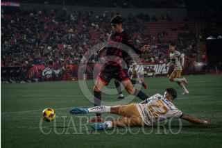 TIJUANA BAJA CALIFORNIA 25FEBRERO2025.-Ramiro Francos e Xolos y Robert Ergas del equipo de Pumas. Xolos de Tijuana rompió su racha negativa de cinco partidos perdidos consecutivos en el Torneo Clausura 2025 al golear 4-2 a Pumas en el Estadio Caliente. Con una destacada y sólida actuación, el equipo dirigido por Juan Carlos Osorio se impuso ante su afición, logrando una victoria que les da un respiro tras un mal paso en el campeonato. Con este contundente triunfo, los Xolos suman 7 puntos tras 9 jornadas disputadas, y aunque la situación aún es complicada, la victoria les permite mantener la esperanza de salir del bache en el que se encontraban. Ahora, el equipo tijuanaense pondrá su mirada en su próximo encuentro, donde se medirán ante León, un rival complicado. Xolos buscará aprovechar la oportunidad para dar un golpe sobre la mesa y seguir sumando puntos en su lucha por mejorar su posición en la tabla. FOTO: CHRIS NOYOLA /CUARTOSCURO.COM