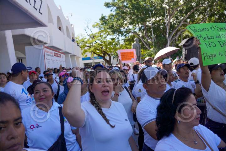 CANCÚN, QUINTANA ROO, 26FEBRERO2025.- Un contingente de maestros se manifiesta este martes en Cancún en rechazo a la reforma a la Ley del ISSSTE 2025, impulsada por el gobierno federal. La protesta, convocada por diversas secciones sindicales del magisterio, busca visibilizar las afectaciones que, según los docentes, traerían los cambios en materia de pensiones y seguridad social. Mientras las protestas continúan en distintos puntos del país, se espera que el debate sobre la reforma a la Ley del ISSSTE 2025 se intensifique en los próximos días en el Congreso de la Unión. FOTO: ELIZABETH RUIZ/CUARTOSCURO.COM
