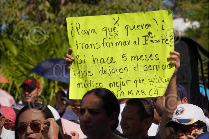 CANCÚN, QUINTANA ROO, 26FEBRERO2025.- Un contingente de maestros se manifiesta este martes en Cancún en rechazo a la reforma a la Ley del ISSSTE 2025, impulsada por el gobierno federal. La protesta, convocada por diversas secciones sindicales del magisterio, busca visibilizar las afectaciones que, según los docentes, traerían los cambios en materia de pensiones y seguridad social. Mientras las protestas continúan en distintos puntos del país, se espera que el debate sobre la reforma a la Ley del ISSSTE 2025 se intensifique en los próximos días en el Congreso de la Unión. FOTO: ELIZABETH RUIZ/CUARTOSCURO.COM