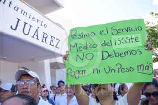 CANCÚN, QUINTANA ROO, 26FEBRERO2025.- Un contingente de maestros se manifiesta este martes en Cancún en rechazo a la reforma a la Ley del ISSSTE 2025, impulsada por el gobierno federal. La protesta, convocada por diversas secciones sindicales del magisterio, busca visibilizar las afectaciones que, según los docentes, traerían los cambios en materia de pensiones y seguridad social. Mientras las protestas continúan en distintos puntos del país, se espera que el debate sobre la reforma a la Ley del ISSSTE 2025 se intensifique en los próximos días en el Congreso de la Unión. FOTO: ELIZABETH RUIZ/CUARTOSCURO.COM