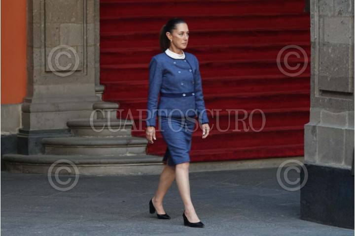 CIUDAD DE MÉXICO, 26FEBRERO2025.- El historiador Felipe Arturo Espinoza; Claudia Sheinbaum, presidenta constitucional de los Estados Unidos Mexicanos, durante su llegada al 112 Aniversario de Francisco I. Madero realizado en el Patio de Honor en Palacio Nacional. FOTO: GRACIELA LÓPEZ/CUARTOSCURO.COM