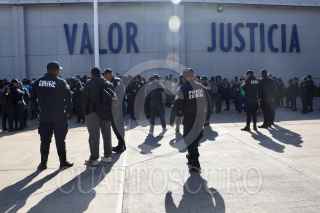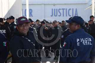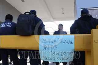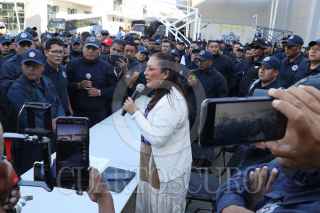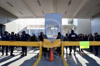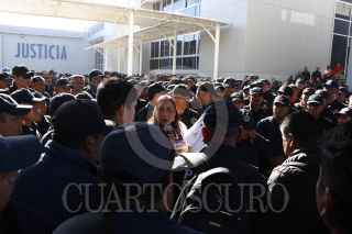 SANTA MARÍA COYOTEPEC, OAXACA, 26FEBRERO2025.- Este miércoles desde temprana hora policías estatales de Oaxaca iniciaron una manifestación al interior del cuartel de la corporación para acusar la intención de despido de más de 400 elementos por no haber aprobado los exámenes de control y confianza (C3). La titular del Secretariado Ejecutivo del Sistema Estatal de Seguridad Pública, Karina Barón Ortiz arribó al cuartel para dialogar con los elementos y aclarar la situación. Los manifestantes pidieron que se hicieran nuevos documentos en donde conste que no serán despedidos y no habrá represalias en su contra. FOTO: CAROLINA JIMÉNEZ/CUARTOSCURO.COM