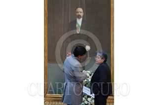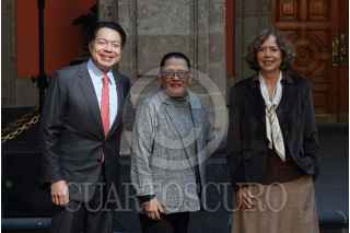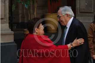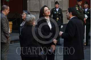CIUDAD DE MÉXICO, 26FEBRERO2025.- Alicia Barcena, titular de Semarnat; Claudia Curiel de Icaza, secretaria de Cultura, y Martí Batres, director del ISSTE, conversaron durante el 112 Aniversario de Francisco I Madero realizado en el Patio de Honor en Palacio Nacional. FOTO: GRACIELA LÓPEZ/CUARTOSCURO.COM