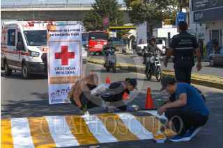 METEPEC, ESTADO DE MÉXICO, 26FEBRERO2025.- La Cruz Roja Estado de México puso en marcha el Proyecto Seguridad Vial 2025 que tiene como objetivo reducir hasta en un 50 por ciento los más de 15 mil accidentes viales que se registran al año en la entidad, se realizará la señalización de cruces escolares, topes y diversos elementos de mobiliario urbano en torno a planteles educativos así como capacitaciones a estudiantes, maestros y padres de familia, se pretende llevar a cabo en escuelas de los 125 municipios mexiquenses, en un inicio se incluye solamente Metepec, Toluca, Ecatepec, Naucalpan, Tlalnepantla, Nezahualcóyotl, Cuautitlán Izcalli y Coacalco. FOTO: CRISANTA ESPINOSA AGUILAR /CUARTOSCURO.COM