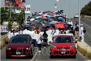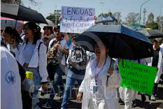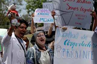 PUEBLA, PUEBLA, 26FEBRERO2025.- Estudiantes de Medicina de la BUAP realizan marcha por segundo día consecutivo, piden mejores maestros y más plazas para realizar prácticas profesionales, entre otras demandas. Alumnos de otras facultades se unieron a ellos en la rectoría de la universidad. FOTO: MIREYA NOVO/ CUARTOSCURO.COM