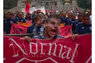 CIUDAD DE MÉXICO, 26FEBRERO2025.- Familiares y estudiantes marchan de manera pacifica desde el Ángel de la Independencia recorriendo reforma por los estudiantes normalistas desaparecidos de Ayotzinapa en la protesta mensual que realizan desde hace 10 años y 5 meses. FOTO:ROGELIO MORALES/CUARTOSCURO.COM