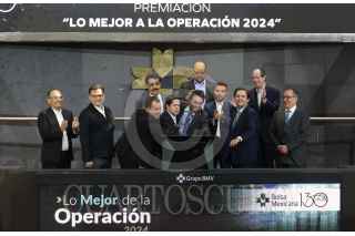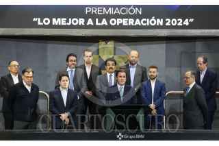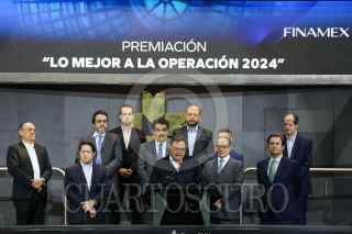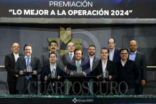 CIUDAD DE MÉXICO, 22FEBRERO2025.- José Hudson, director del Mercado de Capitales de Monex Grupo Financiero, Eduardo Arturo Carrillo Madero. Presidente del Consejo de Administración de la Casa de Bolsa Finamex, y Manuel Subervielle Gaviña, director de la banca de inversión y de valores Goldman Sachs, fueron galardonados con el premio “Lo Mejor a la Operación 2024” por parte de la Bolsa Mexicana de Valores. FOTO: GALO CAÑAS/CUARTOSCURO.COM