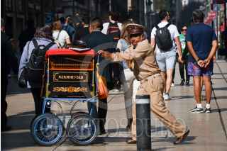 CIUDAD DE MÉXICO, 28FEBRERO2025.- Un organillero transita sobre la calle Francisco I. Madero en el centro histórico. FOTO: MARIO JASSO/CUARTOSCURO.COM