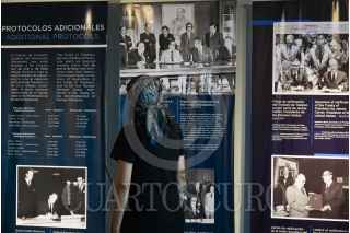 CIUDAD DE MÉXICO, 27FEBRERO2025.- Se llevó a cabo la inauguración de la exposición "Tlatelolco. Epicentro de desarme nuclear y feminismos, en donde explora el cruce entre pasado y presente destacando acontecimientos cuando era la Secretaria de Relaciones Exteriores como el Tratado para la Proscripción de armas nucleares en América Latina y el Caribe, en 1967 y la Primera Conferencia Mundial sobre la Mujer en 1975. Esta muestra integra fotografías de los fotógrafos de Cuartoscuro como Pedro Valtierra, Graciela López, Edgar Negrete, Galo Cañas, Mario Jasso y Andrea Murcia. Estará abierta al público en el Centro Cultural Tlatelolco hasta junio del 2025. FOTO: GRACIELA LÓPEZ/CUARTOSCURO.COM