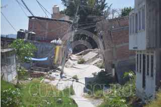 CHILPANCINGO, GUERRERO, 27FEBRERO2025.- Las viviendas de 16 colonias de la zona norponiente de Chilpancingo con severas afectaciones, muchas ya inhabitables, por el desplazamiento lento del suelo. De acuerdo con el Coordinador general de Protección Civil y Bomberos de Chilpancingo, Gustavo Vela Guevara, son al menos 497 viviendas de las 16 colonias las afectadas. Recordó que dicho problema inició en 7 colonias, pero tras una revisión en los últimos meses, el número de colonias afectadas aumento a 16 y las casas afectadas están apunto de llegar al medio millar, las cuales están catalogadas en rojo y amarillo, según sus afectaciones, de las cuales 200 ya son inhabitables. Dijo que el problema del desplazamiento del suelo agravó luego de las lluvias del Huracán 'John', debido a la acumulación de agua. Puntualizó que las afectaciones a las viviendas no son ocasionadas por una "falla geológica", como se ha manejado, sino por un "desplazamiento lento de ladera", asegurando que dicho fenómeno esta avalado en un documento emitido por el Centro Nacional de Prevención de Desastres (CENAPRED). En un recorrido por la zona afectada de las colonias Tlacaelle, San Rafael Norte, Casas Geo, entre otras, se pueden observar los cientos de viviendas afectadas, algunas ya casi destruidas o colapsadas en su totalidad, señalan los pocos vecinos que aún se niegan a abandonar sus hogares, que la zona se ve como si las hubiera destruido un terremoto. FOTO: DASSAEV TÉLLEZ ADAME/CUARTOSCURO.COM