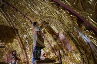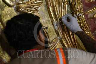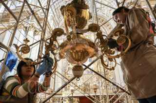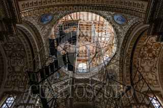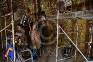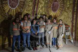 GUADALUPE, ZACATECAS, 28FEBRERO2025.- Especialistas en restauración realizan trabajos en la Capilla de Nápoles, en el Convento de Nuestra Señora de Guadalupe. En un recorrido para medios de comunicación, el Centro del Instituto Nacional de Antropología e Historia- Zacatecas, mostró el trabajo que realizan cotidianamente los restauradores en la cúpula, con aplanados y recuperación de pinturas en paredes que presentaron humedad, después de las lluvias del 2024. Con la supervisión de la restauradora y directora del aréa, Míriam Jazmín Pineda Bravo, los trabajos en el sitió pretender terminar el próximo mes de marzo. Esta capilla representa uno de los valores arquitectónicos y artísticos más importantes del norte de México. Inicia su construcción alrededor de 1850 y su nombre se debe a la imagen de la Purísima Concepción de María en el altar mayor, la cual proviene de Nápoles, Italia. FOTO: ADOLFO VLADIMIR /CUARTOSCURO.COM