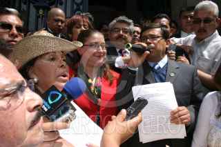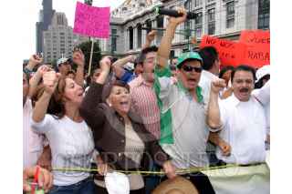 MÉXICO, D.F., 11OCTUBRE2007.- Los lideres de vendedores ambulantes Graciela Barrios, Alejandra Barrios, Miguel Angel Huerta y Jorge García Rodriguez, encabezaron la marcha de comerciantes informales que partió del Angel de la Independencia a el Zócalo, mañana vence el plazo que les dió el gobierno del DF para que retiren sus puestos de las calles del Centro Histórico. FOTO: MOISÉS PABLO/CUARTOSCURO.COM