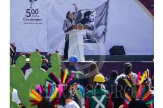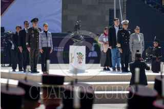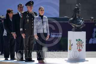 CIUDAD DE MÉXICO, 28FEBRERO2025.- Claudia Sheinbaum Pardo, presidenta de México, en compañía de la jefa de gobierno Clara Brugada; Ricardo Trevilla Trejo, secretario de la Defensa Nacional; Sergio Gutiérrez Luna, presidente de la Cámara de Diputados; Rosa Icela Rodríguez, secretaria de Gobernación; Raymundo Pedro Morales, secretario e Marina, y Gerardo Fernández Noroña, presidente del Senado, encabezaron la guardia de honro durante la ceremonia de “Funerales de Estado en Conmemoración de los 500 años de la Ejecución de Cuauhtémoc” en las inmediaciones del Zócalo capitalino. FOTO: GALO CAÑAS/CUARTOSCURO.COM