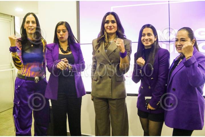 CIUDAD DE MÉXICO. 28FEBRERO2025.- Alessandra Rojo de la Vega, alcaldesa de Cuauhtémoc y Luisa Gutiérrez Ureña, dirigente del PAN en la Ciudad; en la inauguración de un punto violeta de ayuda y apoyo a mujeres violentadas reciban ayuda, esto dentro del marco del Día internacional de la Mujer. FOTO: VICTORIA VALTIERRA/CUARTOSCURO.COM