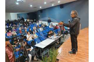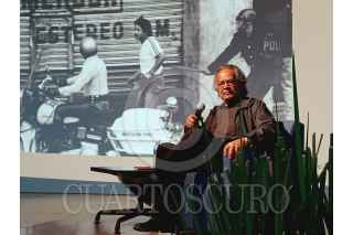 SAN LUIS POTOSÍ, SAN LUIS POTOS, 28FEBRERO2025.- El fotoperiodista mexicano Pedro Valtierra Ruvalcaba, fundador de la Revista y Agencia Cuartoscuro, asistió a la celebración de los 40 años de la Facultad de Ciencias de la Comunicación de la Universidad Autónoma de San Luis, en dónde dicto una conferencia titulada “Reflexiones sobre fotoperiodismo”. FOTO: MARCELO PALACIOS/CUARTOSCURO.COM