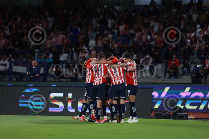 CIUDAD DE MÉXICO, 01MARZO2025. Festejo de los jugadores de Chivas durante te el partido de fútbol Pumas vs Guadalajara correspondiente a la jornada 10 del Torneo Clausura 2025 de Liga BBVA MX, en el Estadio Olímpico Universitario. FOTO: EDGAR NEGRETE LIRA/CUARTOSCURO.COM