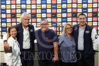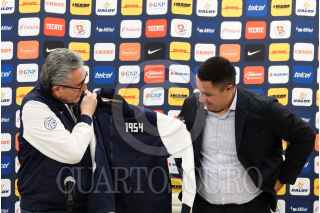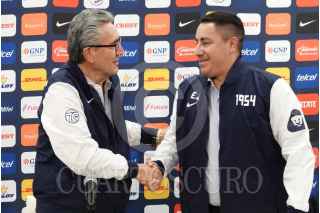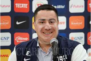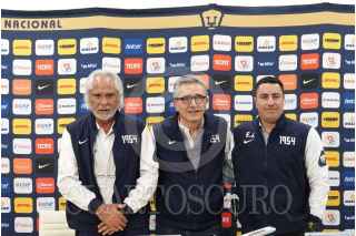 CIUDAD DE MÉXICO, 02MARZO2025.- Miguel Mejía Barón, vicepresidente deportivo, y Efraín Juárez, nuevo director técnico de Pumas, acompañado de sus padres y hermana durante una conferencia de prensa en la Cantera de las instalaciones de Ciudad Universitaria. FOTO: GRACIELA LÓPEZ/CUARTOSCURO.COM