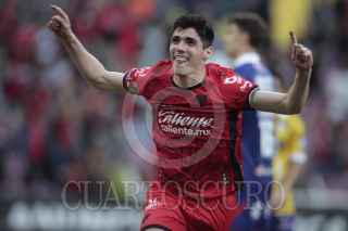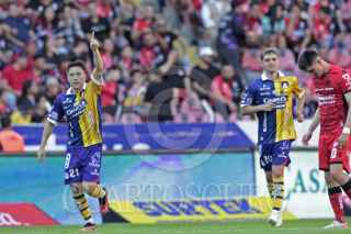 GUADALAJARA, JALISCO, 18FEBRERO2025.- Oscar Macías jugador de San Luis, celebra su anotación, esto en partido correspondiente a la jornada 10 del Torneo Clausura 2025 de la Liga MX, en donde se enfrentan los equipos de Atlas vs San Luis y en juego que se lleva a cabo en el Estadio Jalisco, el marcador al momento es de 1-1. FOTO: FERNANDO CARRANZA GARCIA / CUARTOSCURO.COM