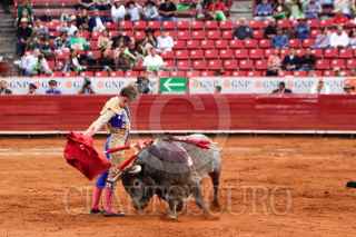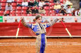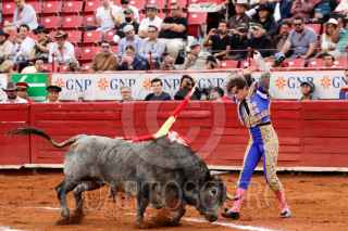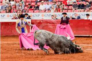 CIUDAD DE MÉXICO, 02MARZO2025.- El "torero mexicano Juan Pedro Llaguno lidia el toro 'Mochilero' de 483 kg. FOTO: TOMÁS PÉREZ DE LA CRUZ/CUARTOSCURO.COM