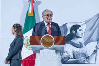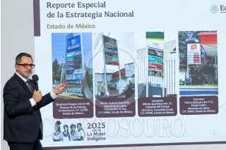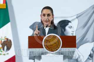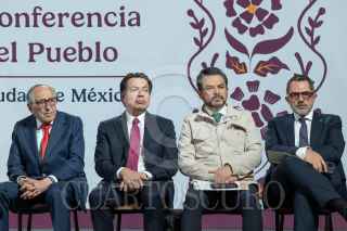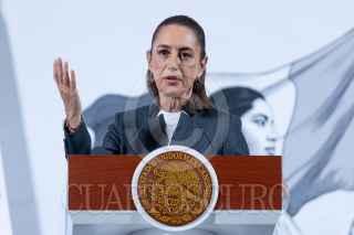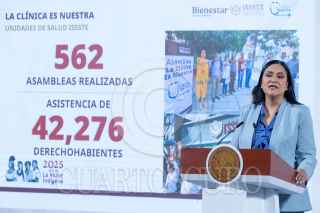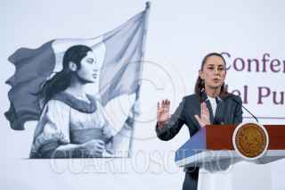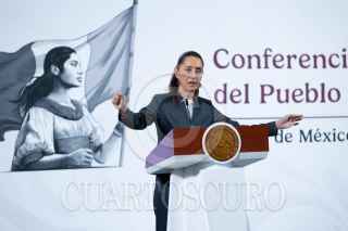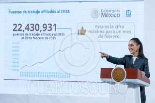 CIUDAD DE MÉXICO, 03MARZO2025.- Claudia Sheinbaum, Presidenta de México, muestra una gráfica de la creación de empleo en lo que de su gobierno durante la conferencia del pueblo en Palacio Nacional. FOTO: MOISÉS PABLO/CUARTOSCURO.COM