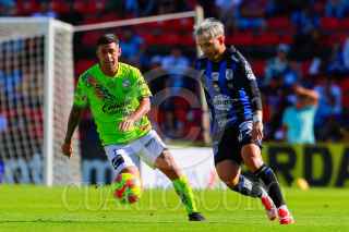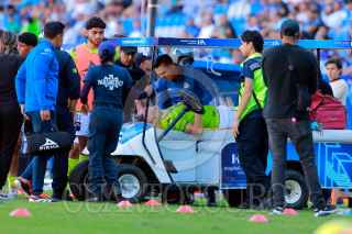 QUERÉTARO, QUERÉTARO, 02MARZO2025.- Emiliano Gámez del Puebla sufrió un choque de cabezas y sale lesionado durante el partido de la jornada 10 del Torneo Clausura 2025 de la Liga BBVA MX en el Estadio Corregidora. FOTO: CÉSAR GÓMEZ/CUARTOSCURO.COM