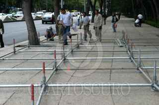 MÉXICO, D.F., 11OCTUBRE2007.- Tecnicos dan los ultimos detalles a los autos que participarán en el Roadshow de Renault Fórmula 1 que correran sobre el paseo de la reforma. FOTO: SAÚL LÓPEZ/CUARTOSCURO.COM
