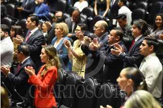 CIUDAD DE MÉXICO, 04MARZO2025.- Legisladores del grupo parlamentario del PRI, encabezados por su coordinador Rubén Moreira, durante la sesión ordinaria de la Cámara de Diputados en la que se ofreció un minuto de silencio y de aplausos, en memoria de Norma Angélica Aceves, ex diputada del PRI. FOTO: MARIO JASSO/CUARTOSCURO.COM