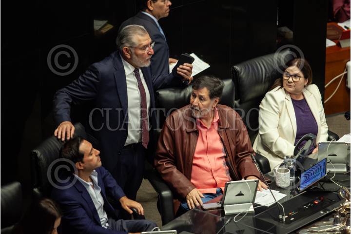CIUDAD DE MÉXICO, 04MARZO2025.- Adan Augusto, coordinador del grupo Parlamentario de morena y Gerardo Fernández Noroña durante sesión en la Cámara de Senadores. FOTO: ANDREA MURCIA /CUARTOSCURO.COM
