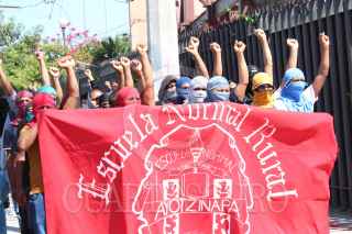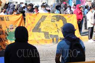CHILPANCINGO, GUERRERO, 04MARZO2025.- Estudiantes de la Normal Rural de Ayotzinapa realizaron un mitin frente a las instalaciones del Congreso local, en el segundo día de la jornada de lucha, por el primer aniversario del asesinato de su compañero, Yanqui Kothan Gómez Peralta Desde las 10:00 horas de este martes, más de un centenar de estudiantes de Ayotzinapa y de la Federación de Estudiantes Campesinos y Socialistas de México (FECSM), llegaron hasta el sur de Chilpancingo. Los manifestantes cerraron la circulación frente al recinto oficial del Poder Legislativo, instalándose frente a la puerta que da acceso al estacionamiento. En el mitin participaron oradores de las escuelas normales de todo el país, quienes se sumaron al esclarecimiento del caso de Yanqui Kothan, quien murió el pasado 7 de marzo del 2024, tras recibir un disparo en la cabeza por parte de un elemento de la Policía del Estado. FOTO: DASSAEV TÉLLEZ ADAME/CUARTOSCURO.COM