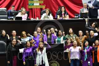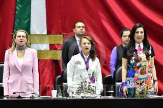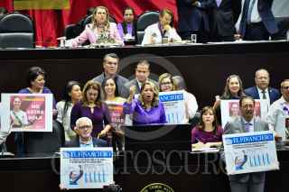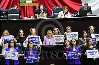 CIUDAD DE MÉXICO, 05MARZO2025.- Dolores Padierna, vicepresidenta de la mesa directiva, regaló el libro "Claudia Sheinbaum: Presidenta" a sus compañeras legisladoras, durante la sesión solemne de la Cámara de Diputados con motivo del día internacional de la mujer. FOTO: MARIO JASSO/CUARTOSCURO.COM