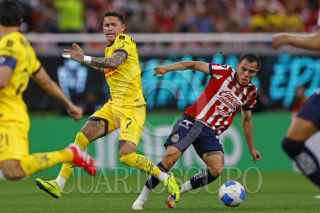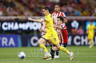 ZAPOPAN, JALISCO, 05MARZO2025.- Álvaro Fidalgo jugador de América, se lamenta por algunas fallas, esto en partido correspondiente los Octavos de Final de ida de la Copa de Campeones de la Concacaf, en donde se enfrentan los equipos de Chivas (México) vs América (México) y en juego que se lleva a cabo en el Estadio Akron, el marcador al final es 1-0, a favor del equipo de casa. FOTO: FERNANDO CARRANZA GARCIA / CUARTOSCURO.COM