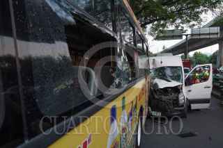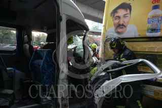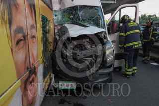 CIUDAD DE MÉXICO, 05MARZO2025.- Al menos 10 personas lesionadas fue el resultado de un choque de una vagoneta con un camión de transporte público, estro en Periférico Sur a la altura del Hospital de Pemex. FOTO: ROGELIO MORALES /CUARTOSCURO.COM