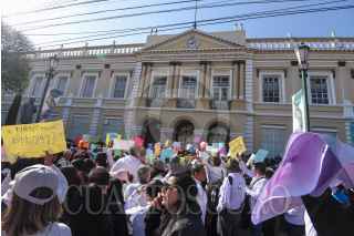 TOLUCA, ESTADO DE MÉXICO, 06MARZO2025.- Desde muy temprana hora se dieron cita universitarios en la Rectoría de la Universidad Autónoma del Estado de México donde 9 aspirantes aspirantes a la rectoría le entregaron su solicitud de registro para participar en el Proceso de Elección de Rector o Rectora para el periodo Ordinario 2025-2029. FOTO: CRISANTA ESPINOSA AGUILAR /CUARTOSCURO.COM