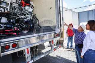 MORELOS, ZACATECAS, 07MARZO2025.- Un tráiler arribó la mañana de este viernes desde California, Estados Unidos; con equipo médico donado y coordinado por los Clubes adheridos a la “Federación de Clubes Zacatecanos del Sur de California”. La primera parada fue en el municipio de Morelos, en donde se entregó a comisiones de pobladores del municipio, ademas otro tanto al municipio de Fresnillo y otro mas a la comunidad de Ermita de los Correa, de Jerez. La actividad de solidaridad y apoyo de migrantes zacatecanos a sus comunidades originarias fue organizada por el vicepresidente, Guadalupe “Lupe El Bueno” Rodríguez, coordinador del programa, establecido durante la pandemia para dotar de sillas de ruedas, andaderas, muletas y camas para hospitales a municipios que están representados por los clubes de la federación. Después de la primer parada, el tráiler migrante continuará entregando durante este día otro tanto de aparatos y equipo médico en los municipios de Jalpa, Juchipila y Moyahua. FOTO: ADOLFO VLADIMIR /CUARTOSCURO.COM
