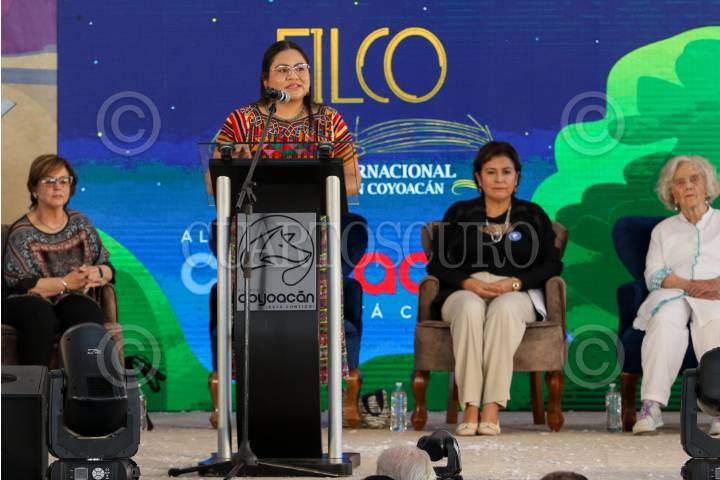 CIUDAD DE MÉXICO. 07MARZO2025.- Ceremonia de inauguración de la IV Feria Internacional del Libro de Coyoacán. La cita es en la plaza Hidalgo, en el Centro Histórico de Coyoacán, en el escenario Haruki Murakami.Participaron las escritoras Piedad Bonnett (Premio Reina Sofia) y Elena Poniatowska (Premio Cervantes), además de grandes personalidades del mundo de la cultura. FOTO: VICTORIA VALTIERRA/CUARTOSCURO.COM