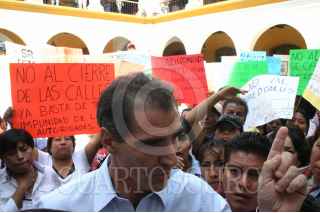 OAXACA,OAXACA.,15OCTUBRE2007.-Cientos de comercientes salen a las calles a manifestarse debiado a que Manuel Esteva presidente ha cerrado las calles donde laboran diariamente FOTO:MAX NUÑEZ/CUARTOSCURO.COM