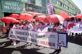 PUEBLA, PUEBLA, 08MARZO2025.- Trabajadoras sexuales de la organización "Chicas de la 14" realizaron manifestación para pedir respeto a su trabajo y sus derechos en el marco de la celebración del 8M. FOTO: MIREYA NOVO/ CUARTOSCURO.COM