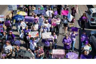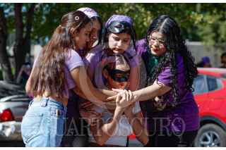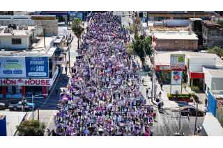 CULIACÁN, SINALOA, 08MARZO2025.- Integrantes de colectivos feministas, madres buscadoras, familiares de víctimas de feminicidio, jóvenes, adultas y niñas marcharon desde el Palacio de Gobierno hasta la Catedral para exigir seguridad para las mujeres de Sinaloa. Con pancartas y vestimenta morada, salieron a las calles gritando por las mujeres asesinadas, desaparecidas y maltratadas, exigiendo tanto a las autoridades como a la ciudadanía que no sean indiferentes ante la violencia en el día internacional de la mujer. FOTO: JOSÉ BETANZOS/CUARTOSCURO.COM