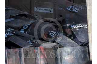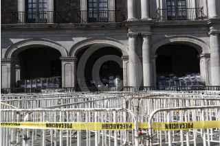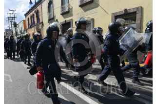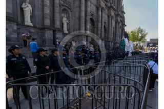 TOLUCA, ESTADO DE MÉXICO, 08MARZO2025.- Policías estatales mujeres y hombres resguardaron los edificios de la zona centro de Toluca, adicional a las vallas que fueron instaladas en días anteriores en el marco de las movilizaciones por el Día de la Mujer. FOTO: CRISANTA ESPINOSA AGUILAR /CUARTOSCURO.COM