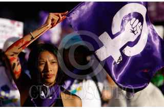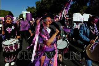 QUERÉTARO, QUERÉTARO, 08MARZO2035.- Distintos colectivos de feministas participaron en la marcha por la conmemoración del día internacional de la mujer. Partieron de la Alameda y caminaron por las calles del centro histórico culminando con un mitin en jardín Guerrero. FOTO: CÉSAR GÓMEZ/CUARTOSCURO.COM