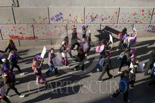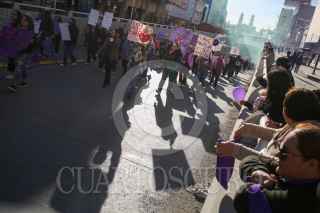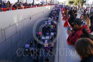 CIUDAD JUÁREZ, CHIHUAHUA, 08MARZO2025.- Más de 5 mil mujeres de todas las edades marcharon este 8 de marzo en el Centro de Ciudad Juárez para exigir justicia por feminicidios y desapariciones. El contingente partió del monumento a Benito Juárez y avanzó por la 16 de Septiembre, donde algunas participantes realizaron pintas en el túnel de la Juárez. La movilización llegó a la Cruz de Clavos, en el puente internacional Paso del Norte, donde madres de víctimas dieron un pronunciamiento. Tras el acto, la marcha se dispersó, dejando en las calles el eco de sus exigencias: justicia y seguridad para las mujeres. FOTO: CARLOS SÁNCHEZ COLUNGA/CUARTOSCURO.COM