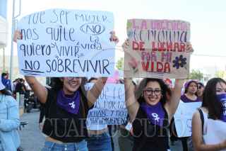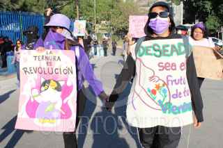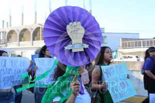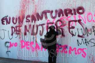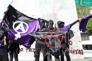 CHILPANCINGO, GUERRERO, 08MARZO2025.- Durante el desarrollo del Día Internacional de la Mujer, el contingente conformado por poco más de 300 mujeres, partieron en marcha minutos después de las 3 de la tarde del monumento a Las Banderas, en dirección al sur de la ciudad, para culminar con un mitin en Ciudad Judicial. En su recorrido, realizaron distintas paradas en Ciudad Universitaria (C. U.), Recinto Oficial del Poder Ejecutivo de Guerrero (ROPEG, antes llamado Palacio de Gobierno), Hospital de la Madre y el Niño Guerrerense (HMNG), Lienzo Charro 'Dario L. Arrieta', Secretaría de los Migrantes y Asuntos Internacionales y Fiscalía General del Estado (FGE), donde el Bloque Negro que acompañó esta marcha, realizó pintas y pego fichas de mujeres desaparecidas y asesinadas, deudores alimenticios, además de que en estos puntos también realizaron distintas denuncias qué iban desde violaciones hasta demandas de pensión y violencia familiar. En su paso por el HMNG, denunciaron la violencia obstétrica de las que han sido víctimas las mujeres en ese lugar, mientras que en las instalaciones de la Universidad Autónoma de Guerrero (UAGro) lamentaron la falta de justicia hacia las mujeres y la protección de violadores y acosadores, principalmente docentes, en las distintas Facultades y escuelas de la máxima casa de estudios del estado. FOTO: DASSAEV TÉLLEZ ADAME/CUARTOSCURO.COM