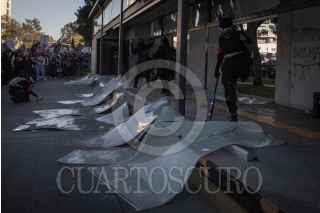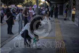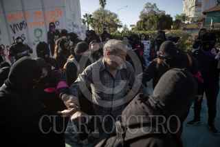 TIJUANA BAJA CALIFORNIA 08MARZO2025.-Miles participaron este sábado en la marcha de Tijuana para conmemorar el Día Internacional de la Mujer. La marcha comenzó aproximadamente a las 3:00 p.m. desde la glorieta conocida como “Las Tijeras” y avanzó por el Paseo de los Héroes. El contingente, encabezado por el llamado “Bloque Negro”, llegó hasta la glorieta del General Ignacio Zaragoza, frente al Hotel Lucerna, y allí retornó al punto de partida. Fue en la glorieta de Abraham Lincoln donde se realizaron pintas, así como en varias estaciones del Sistema Integral de Transporte de Tijuana (SITT), donde también se realizaron manifestaciones, golpeando las paredes. Al regresar a la glorieta “Las Tijeras”, se llevó a cabo la concentración, que incluyó un concierto. Durante este momento, también se realizó la búsqueda de una menor llamada “Valeria”, quien fue finalmente localizada en su casa. En el mismo lugar, un hombre se introdujo entre el contingente, lo que generó el descontento de las mujeres. Con gritos y consignas, lograron que el hombre se alejara de la manifestación, que era exclusiva para mujeres. Las víctimas compartieron sus testimonios para alzar la voz, pedir justicia y luchar para que no haya más historias como las suyas. Además, se pronunciaron en voz alta los nombres de mujeres víctimas de feminicidio o desaparecidas, entre ellas, el de Diana Gómez Piggeonountt. Como parte de la manifestación, también se quemaron las pancartas de algunas de las participantes, que contenían frases elaboradas por cada mujer para ser escuchadas. FOTO CARMEN LÓPEZ/CUARTOSCURO.COM